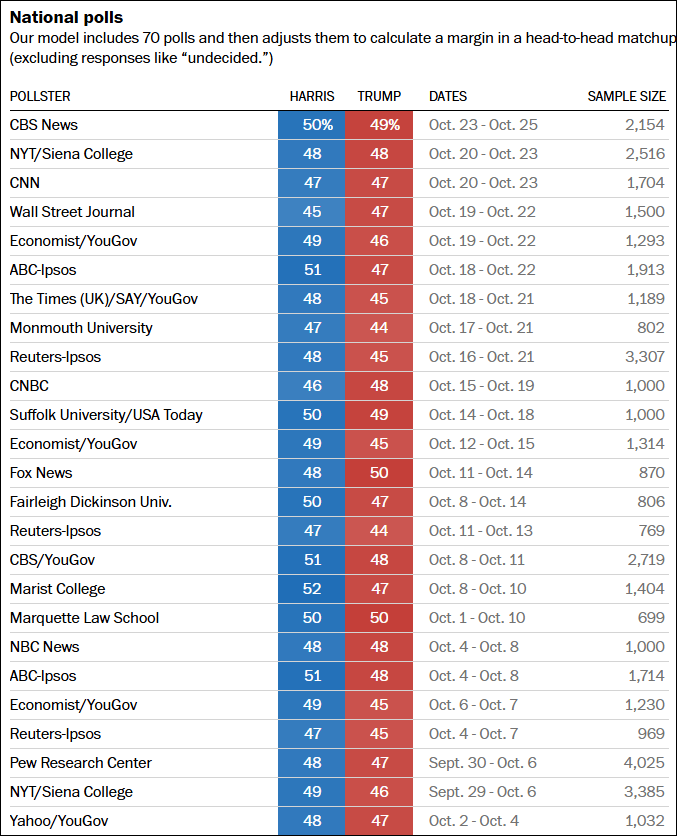 在其他主流媒体民调中,《华盛顿邮报》梳理了进入10月以来的各家民调,哈里斯和特朗普各有领先的情况,也有打平的情况出现皇冠信用盘。