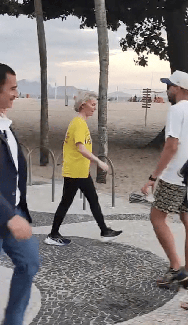 扎哈罗娃发布视频显示,身着运动服的冯德莱恩在G20峰会期间翻越围栏皇冠信用网代理。图源:扎哈罗娃社交媒体视频截图