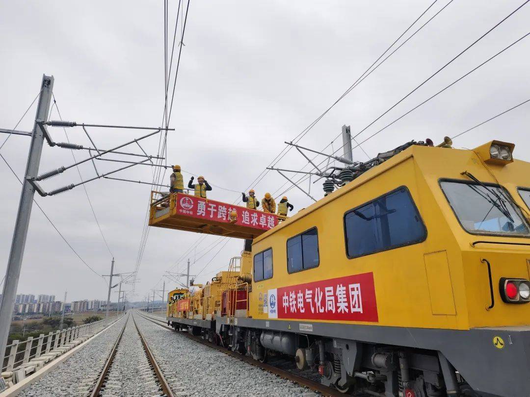 “四电”工程是高铁建设中通信、信号、电力和电力牵引供电等专业工程的总称,是整条高铁的“中枢大脑”和动力之源,也是高铁建设中的关键环节皇冠信用网盘口。通过车顶受电弓,高铁列车汲取接触网导线上的电能,所产生的动力是高铁运行的基础。南凭高铁崇凭段共需架设接触网导线210条公里,其施工质量直接关系列车的运行质量。