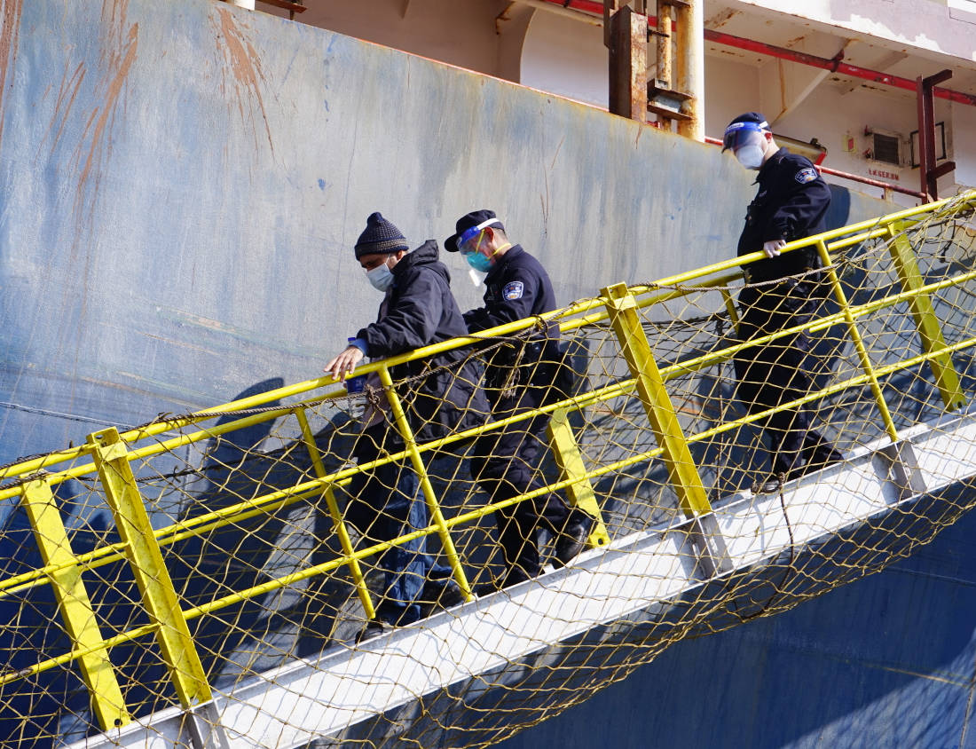 图1为:民警对患病船员进行人证对照皇冠信用网登3代理。